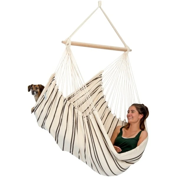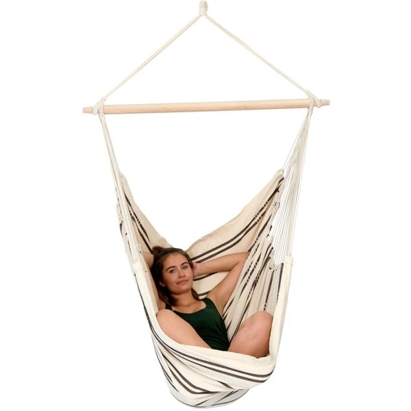 Aus Brasilien, dem Land der Siestaweltmeister, kommt der Platz zum Träumen: Mit 1,30 m Breite und 1,60 m Länge hat Brasil King-Size-Format und ist damit schon fast so groß wie eine klassische brasilianische Hängematte. Die 4-fach vernähten Abschlüsse sowie der extradichte 400 g/m² Webstoff, sorgen wie auch bei allen brasilianischen Hängematten der Firma Amazonas für höchste Belastbarkeit. Aufgespannt wird Brasil mit einem 1,10 m langen und 40 mm starken Holzstab, dessen Drechselung (innen dicker als außen) ein Verrutschen der Seile nach innen verhindert.Art.-Nr.: 1398234