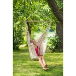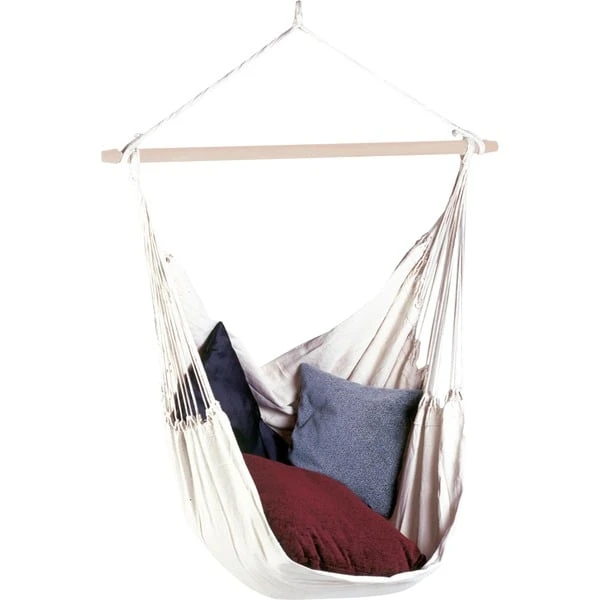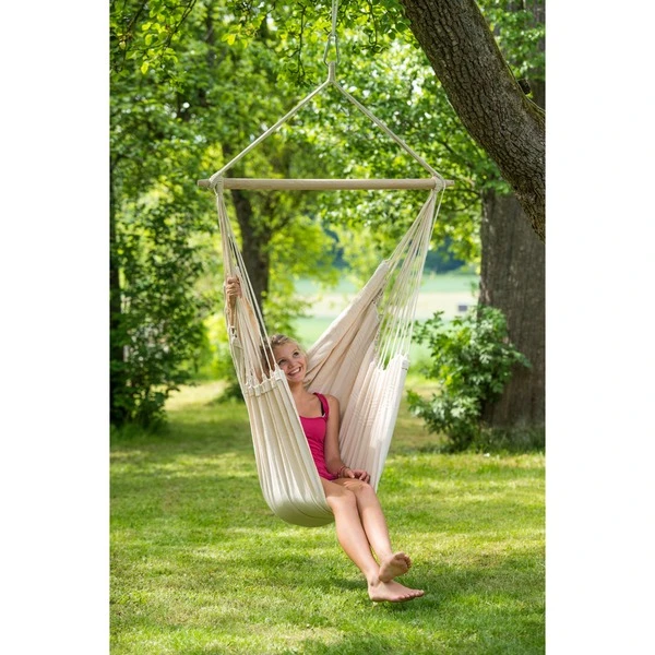 Aus Brasilien, dem Land der Siestaweltmeister, kommt der Platz zum Träumen: Mit 1,30 m Breite und 1,60 m Länge hat Brasil King-Size-Format und ist damit schon fast so groß wie eine klassische brasilianische Hängematte. Die 4-fach vernähten Abschlüsse sowie der extradichte 400 g/m² Webstoff, sorgen wie auch bei allen brasilianischen Hängematten der Firma Amazonas für höchste Belastbarkeit. Aufgespannt wird Brasil mit einem 1,10 m langen und 40 mm starken Holzstab, dessen Drechselung (innen dicker als außen) ein Verrutschen der Seile nach innen verhindert.Art.-Nr.: 1398182