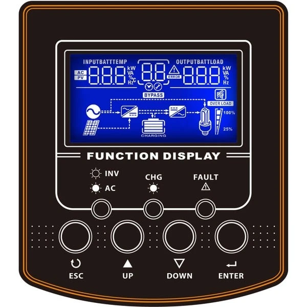 Der PowerWalker Wechselrichter 5000 PWM kann mit einem Generator oder mit einer PV (Photovoltaik) Anlage als Stromquelle verwendet werden. Er vereint die Funktionen eines Wechselrichters sowie eines Solar- und Batterieladegeräts und ermöglicht ein schnelles Aufladen der beiden externen Batterien (nicht enthalten). Er kann dann alle Arten von Geräten zu Hause oder im Büro mit Strom versorgen, einschließlich motorbetriebener Geräte wie Röhrenlampen, Ventilatoren, Kühlschränke und Klimaanlagen. Er generiert einen reinen Sinuswellenausgang für eine breite Palette von Anwendungen und eignet sich auch für raue Umgebungen. Das übersichtliche LCD-Display bietet benutzerkonfigurierbare und leicht zugängliche Tastenfunktionen, wie z.B. Batterieladestrom und zulässige Eingangsspannung für verschiedene Geräte.Art.-Nr.: 1858345