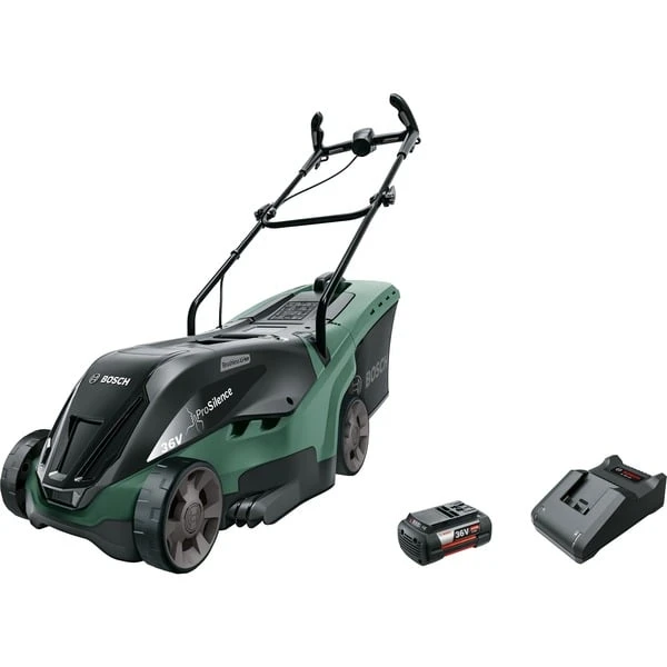 Der Akku-Rasenmäher UniversalRotak 36-550 von Bosch zeichnet sich durch geringe Geräuschentwicklung und mühelose Bedienung aus. Er bietet kabellose Freiheit, kein Kabelwirrwarr, und keine Benzinabgase. Die „ProSilence“-Funktion reduziert die Geräuschabgabe um bis zu 30% und sorgt für eine angenehmere Akustik. Die Schnitthöhe kann per einfachem Schalterdruck in sechs Stufen eingestellt werden. Die 40-Liter-Grasfangbox hat ausreichende Kapazität, und die einzigartigen Rasenkämme mähen das Gras perfekt bis an die Kante. Der Korb ist faltbar, dadurch einfach im Aufbau und flach zusammengefaltet platzsparend lagerbar. Eine Füllstandsanzeige verhindert das Überladen beim Mähen. Das „LeafCollect“-Messer sammelt und häckselt auch Laub für eine einfache Entsorgung mit dem Grasfangkorb. Der UniversalRotak 36-550 ist mit dem intelligenten Bosch Syneon Chip ausgestattet. Der Syneon Chip analysiert durchgängig den Energiebedarf und entnimmt dem Akku nur soviel Energie, wie für die optimale Leistung für anspruchsvolle Anwendungen, oder maximale Ausdauer bei weniger intensiven Arbeiten notwendig ist. Die Bosch „ErgoFlex“-Griffe reduzieren die Belastung von Armen und Rücken durch eine perfekte Haltung beim Mähen. Mehrere Verstellschalter ermöglichen eine individuelle Anpassung und optimalen Komfort. Das „Efficient Energy Management“ des UniversalRotak 36-550 verlängert die Akku-Laufzeit um bis zu 15%.Art.-Nr.: 1624105