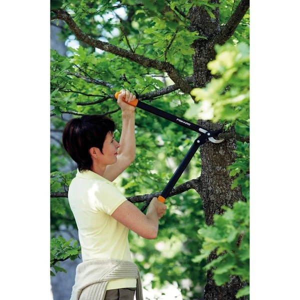 Diese Bypass-Getriebeastschere ist ein 57 Zentimeter langes Modell, welches sich ideal zum Schneiden von frischem Grün, Büschen und Hecken eignet. Ihre messerscharfe obere Klinge, die auch nach mehrmaligem Benutzen ihre ursprüngliche Schärfe behält, gleitet problemlos durch frisches Holz mit einem Durchmesser von maximal 38 Millimetern. Die untere Klinge, mit ihrer hakenförmigen Ausführung, dient zusätzlich dem Fixieren des abzuschneidenden Astes. Da die obere Klinge antihaftbeschichtet ist, wird beim Schneiden weniger Reibung erzeugt. Somit wird die Klinge vor Reibung geschützt und macht präzisere Schnitte. Auch bei dieser Fiskars Astschere kommt der intelligente Getriebemechanismus zum Einsatz. Im richtigen Moment – am Anfang und zum Ende des Schneidvorgangs – greift dieser ein und erleichtert das Schneiden durch die richtige Kraftverteilung. Die EaseCut™-Technologie erhöht die Schneidkraft außerdem um das Dreifache. Die schwarzen Hebelarme der Fiskars Astschere sind stabil und leicht, die Griffe in Orange haben eine angenehme Oberfläche. Dank des Gewichts von nur 550 Gramm, können auch lange Schneidarbeiten ohne Ermüdung der Arme erledigt werden.Art.-Nr.: 1412092