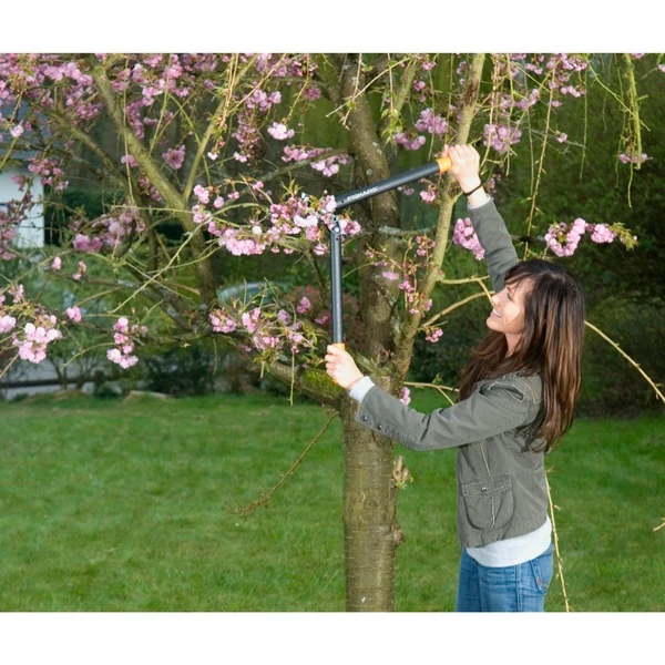 Die 58 Zentimeter lange PowerGear II Bypass Getriebe-Astschere L76 ist mit ihren feinen Klingen für besonders präzise Schneidarbeiten geeignet. Diese Fiskars Astschere schneidet auch mit den Klingenspitzen sauber und äußerst genau. Sie ist insbesondere für frisches Grün geeignet. Dicht gewachsene Sträucher, Hecken und Büsche können mit ihr ebenso gut geschnitten werden. Diese PowerGear™ II-Ausführung schneidet am besten bis zu 28 Millimeter dicke, frische Äste und Zweige. Das geringe Gewicht von 550 Gramm ermöglicht ermüdungsfreies Schneiden, auch über einen längeren Zeitraum. Die Stahlklinge dieser Fiskars Astschere behält ihre Schärfe und ist außerdem antihaftbeschichtet. Diese Eigenschaften machen sie sehr langlebig. Die obere Klinge kann bei Bedarf jedoch ersetzt werden. Mit dreifach höherer Schneidleistung ohne mehr Krafteinsatz schneiden, wird durch die EaseCut™-Technologie ermöglicht. Darüber hinaus arbeitet diese Bypass-Getriebeastschere mit dem intelligenten Getriebemechanismus, der die Schneidleistung ebenfalls erhöht.Art.-Nr.: 1412103