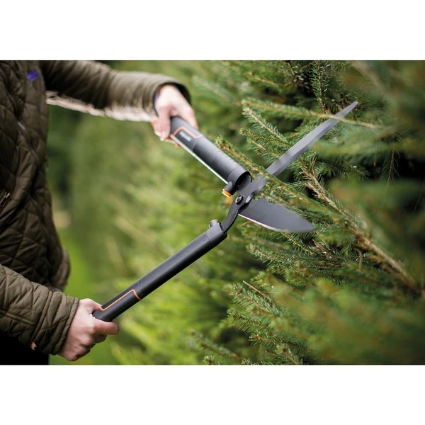 Die SingleStep Heckenschere HS22 von Fiskars eignet sich optimal zum leichten Form- sowie Rückschnitt von Hecken. Sie ist ebenso gut für große Flächen geeignet. Mit einer Länge von 58 Zentimetern ist sie sehr handlich. Ihre Griffe sind aus einem leichten aber stabilen Kunststoff gefertigt und ermöglichen ein Gesamtgewicht von 840 Gramm. Mit diesem Werkzeug sind auch länger dauernde Heckenschnitte kein Problem. Dank des speziellen Aufbaus und des geringen Gewichtes lässt es sich mit ihr angenehm und lange arbeiten, ohne jegliche Ermüdungserscheinungen. Zusätzlich befinden sich an den Innenseiten der Kunststoff-Griffe zwei kleine Puffer, die Stöße abfedern und die Handgelenke des Benutzers schonen. Beide Klingen bestehen aus Stahl und sind somit sehr robust. Der spezielle Wellenschliff ermöglicht einen optimalen Halt des Schnittwerks. Die SingleStep Heckenschere HS22 ist in einem besonderen Design gestaltet. Es ist dabei ganz schlicht, die Grundfarbe ist ein mattes Schwarz. Die orangefarbenen Elemente verleihen dieser Fiskars Heckenschere ein neuartiges Design.Art.-Nr.: 1412187