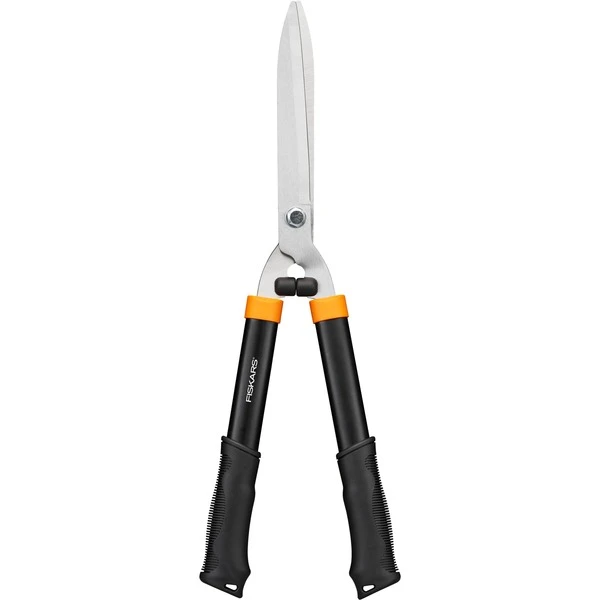 Die Solid Heckenschere HS21 von Fiskars eignet sich optimal zum leichten Form- sowie Rückschnitt von Hecken und Büschen. Sie ist ebenso gut für große Flächen geeignet. Mit einer Länge von 55 Zentimetern ist sie sehr handlich. Dank des speziellen Aufbaus und des geringen Gewichtes lässt es sich mit ihr angenehm und lange arbeiten, ohne jegliche Ermüdungserscheinungen. Zusätzlich befinden sich an den Innenseiten der Griffe zwei kleine Puffer, die Stöße abfedern und die Handgelenke des Benutzers schonen. Die Klingen der Solid Heckenschere HS21 bestehen aus gehärtetem Stahl und sind somit sehr robust.Art.-Nr.: 1709333