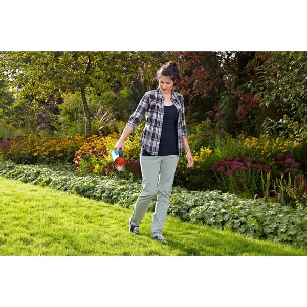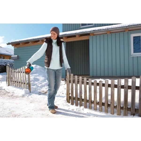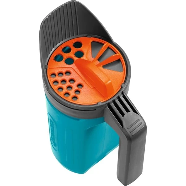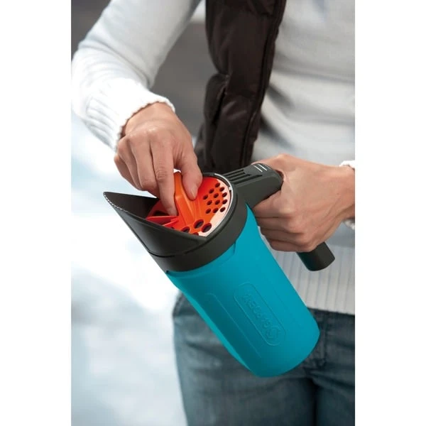 Mit dem GARDENA Kleinstreuer S (3255-20) lassen sich Sand, Salz und Splitt wohl dosiert verteilen. Das einzigartige Dosiersystem macht es möglich. Einfach die Dosierscheibe am Deckel drehen und die gewünschte Streu-Öffnung (je nach gewähltem Streugut) von grob bis fein auswählen. Der handliche, große Verstellknopf lässt sich selbst mit dicken Handschuhen bequem drehen. Durch den Bajonettverschluss lässt sich der Kleinstreuer problemlos öffnen und schließen. Zum bequemen Befüllen kann das Griffteil als Schaufel verwendet werden. Zwei seitlich angebrachte Griffmulden sorgen dafür, dass der Behälter gut in der Hand liegt.Art.-Nr.: 1252523