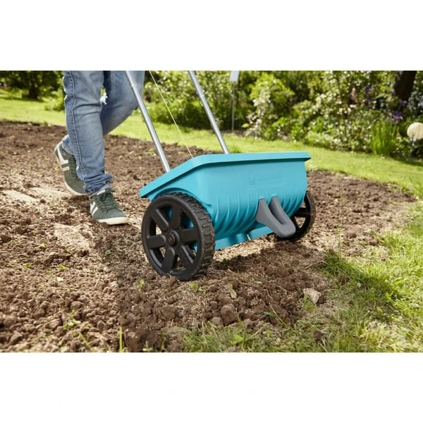 Der GARDENA Streuwagen L (432-20) hat eine Streubreite von 45cm und ein Fassungsvermögen von 12,5 Litern. Mit dem großen Volumen ist er für Flächen von ca. 400m² (+/- 20%) geeignet. Die clevere, hoch elastische Spezial-Streuwalze bringt das Streugut optimal aus. Mit dem Streuwagen L gibt es kein unbeabsichtigtes Austreten von Streugut und kein Nachrieseln mehr. Die in den Griff integrierte Auf- / Zu-Funktion verschließt die Öffnung mit der patentierten Verschlussleiste mit Weichkunststoff-Lippe sicher. Es kann nahezu jedes mögliche Streugut gewählt werden. Egal ob Kalk, Sand, Samen, Dünger, Salz oder Splitt, der GARDENA Streuwagen L hat das gesamte Jahr über eine Funktion. Der stabile, aus Aluminium gefertigte Bügel lässt sich leicht ein- oder zweihändig steuern und bedienen. Die mehrstufige Mengeneinstellung befindet sich ebenfalls leicht erreichbar am Griff. Die Räder verfügen über leichtgängige Kugellager. Zudem ist der Streuwagen schnell und leicht unter dem Wasserstrahl zu reinigen.Art.-Nr.: 1391457