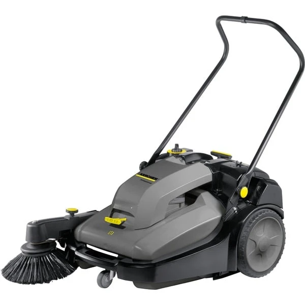 Die Kehrmaschine KM 70/30 C Bp Pack Adv von Kärcher ist der Nachfolger der KSM 690. Die Handkehrmaschine arbeitet nach dem Kehrschaufelprinzip und hat eine elektrisch angetriebene Hauptkehrwalze sowie einen elektrisch angetriebenen Seitenbesen, z.B. zum leichten Auskehren von Ecken. Der Schubbügel ist 3-fach höhenverstellbar, klappbar und bietet hohen Bedienkomfort. Die Kehrwalze und der Seitenbesen können einfach in der Höhe eingestellt werden. Die Einstellung der Kehrwalze erfolgt schnell und einfach über einen Handgriff mit 6 Raststufen. Die 12 Volt Batterie und das entsprechende Ladegerät (230 Volt, mit Schutzkontaktstecker) sind im Gerät eingebaut. Tragegriffe vorne und hinten erleichtern den Transport und das Verladen der Kehrmaschine KM 70/30 C Bp Pack Adv in einen Pkw. Die nach hinten herausstehenden Räder erleichtern den Transport über Treppen. Die Feinstaubabsaugung der Adv-Version ist ein aktives, elektrisch betriebenes Sauggebläse zur Absaugung von Feinstaub aus dem Kehrgutbehälter. Zum Kehren bei nassen Böden ist sie abschaltbar.Art.-Nr.: 1510719