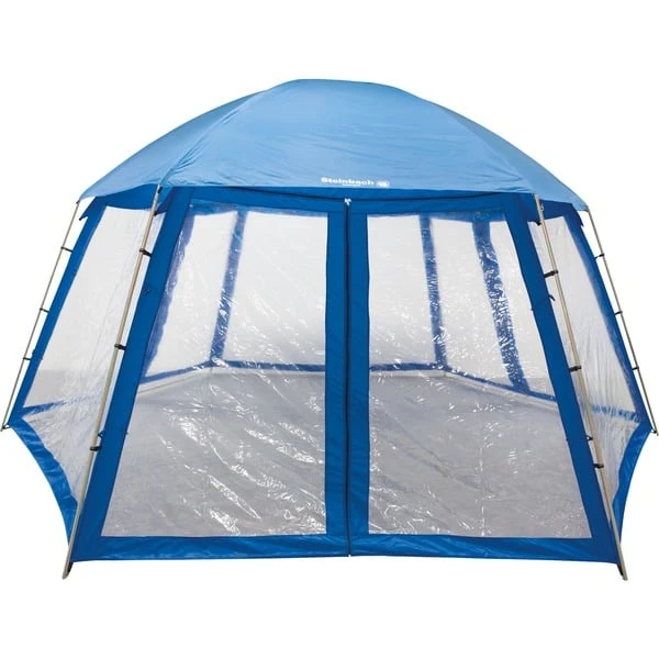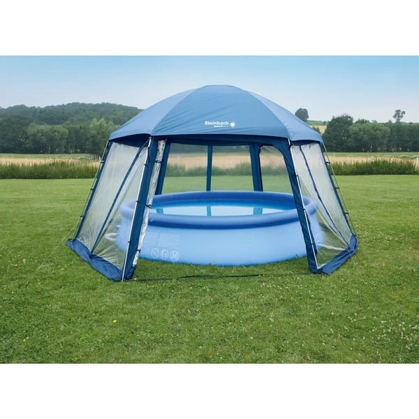 Das 600x520x280 cm große Steinbach Mega Pooldach ist individuell einsetzbar; als Sonnenschutz über dem Schwimmbad oder als Überdachung für die eigene Sitzgruppe. Daneben ermöglicht das Steinbach Mega Pooldach 600x520x280 cm ein schnelleres Aufwärmen des Poolwassers und reduziert die Verschmutzung im Pool. Der Aufbau ist schnell und einfach, das leichte Gewicht ermöglicht ein schnelles Umsetzen im montiertem Zustand. Das Pooldach ist für Aufstellpools bis zu einem Durchmesser von 457 cm geeignet.Art.-Nr.: 1284902